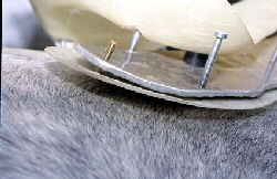 Wir verwenden dafür ein eigens konstruiertes Meßgerät, mit dem die Form des Pferderückens auf den Millimeter genau bestimmt und sozusagen spiegelverkehrt abgenommen wird. Das allein reicht aber nicht aus, um einen perfekten Swing-Sattel zu fertigen.